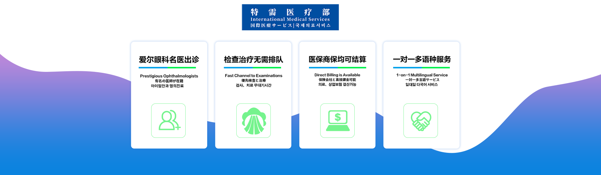 致力于為廣大旅居在上海的有包括支付方式、語言支持、疑難眼病等特需需求的國內外客戶提供高品質的眼科醫療、醫美服務。